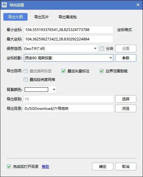 在“导出设置”对话框中,我们可以选择坐标投影,比如这里选择“西安80高斯投影”,另外还可以选择图片的保存格式和背景颜色等。