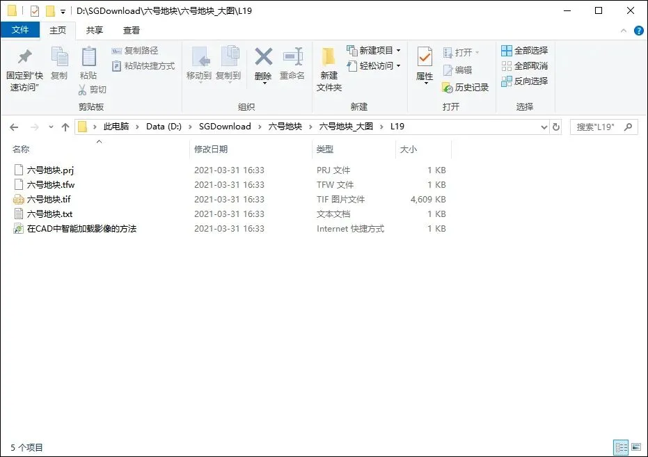 在导出结果目录中,除了有卫星影像图片外,还有prj和tfw文件,它们记录了坐标投影信息,可以确保CAD插件将卫星影像加载到正确的坐标位置。