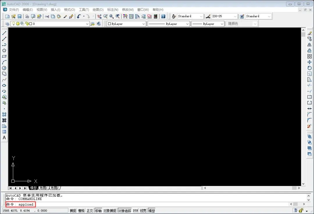 打开AutoCAD后输入“appload”命令,可以打开CAD插件加载对话框。