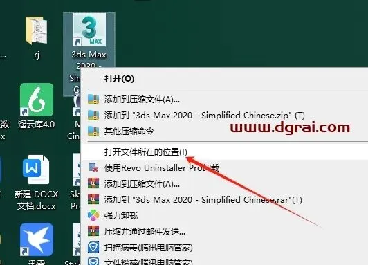 找到3dmax软件,鼠标右键打开文件所在的位置进入安装目录位置