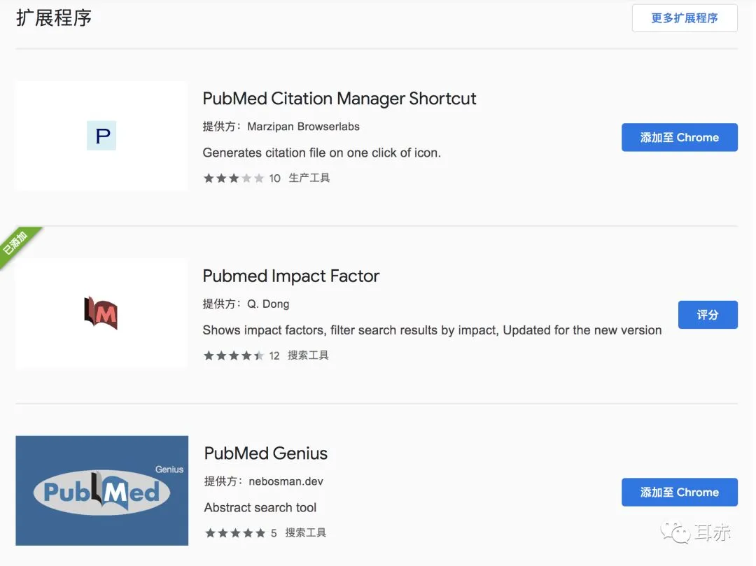 2. 显示三个扩展程序,选择Pubmed Impact Factor添加至Chrome就可以啦
