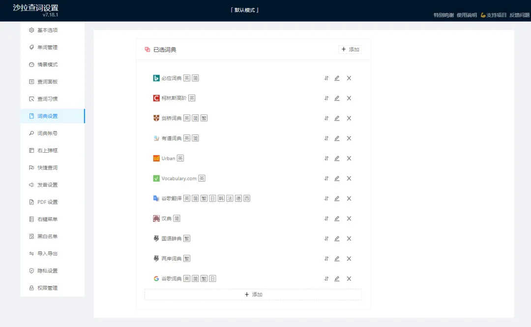 沙拉查词里面聚合了很多权威词典,内置了剑桥词典、柯林斯高阶、有道词典、谷歌翻译等多个词典。