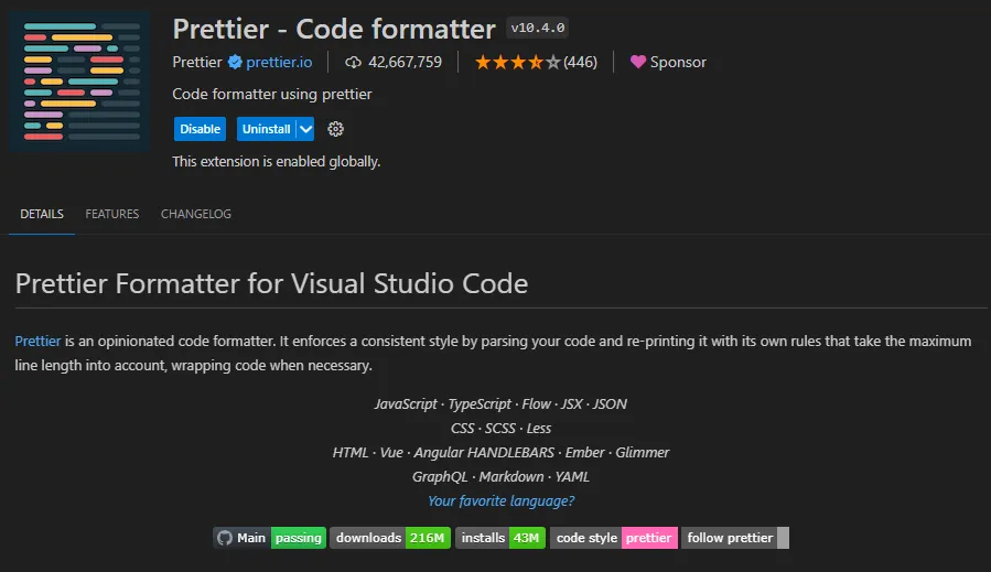 插件名字:Prettier