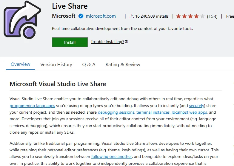 官方地址:https://marketplace.visualstudio.com/items?itemName=MS-vsliveshare.vsliveshare