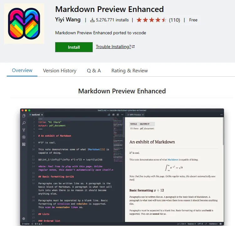 官方地址:https://marketplace.visualstudio.com/items?itemName=shd101wyy.markdown-preview-enhanced