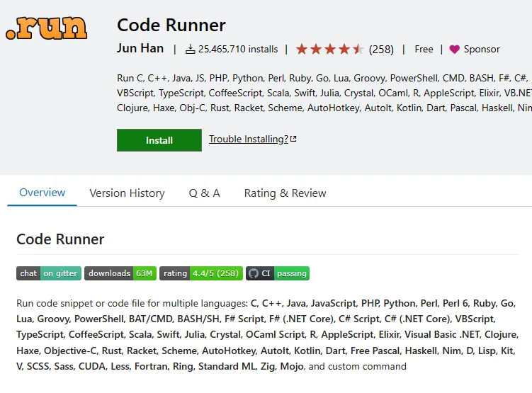 官方地址:https://marketplace.visualstudio.com/items?itemName=formulahendry.code-runner