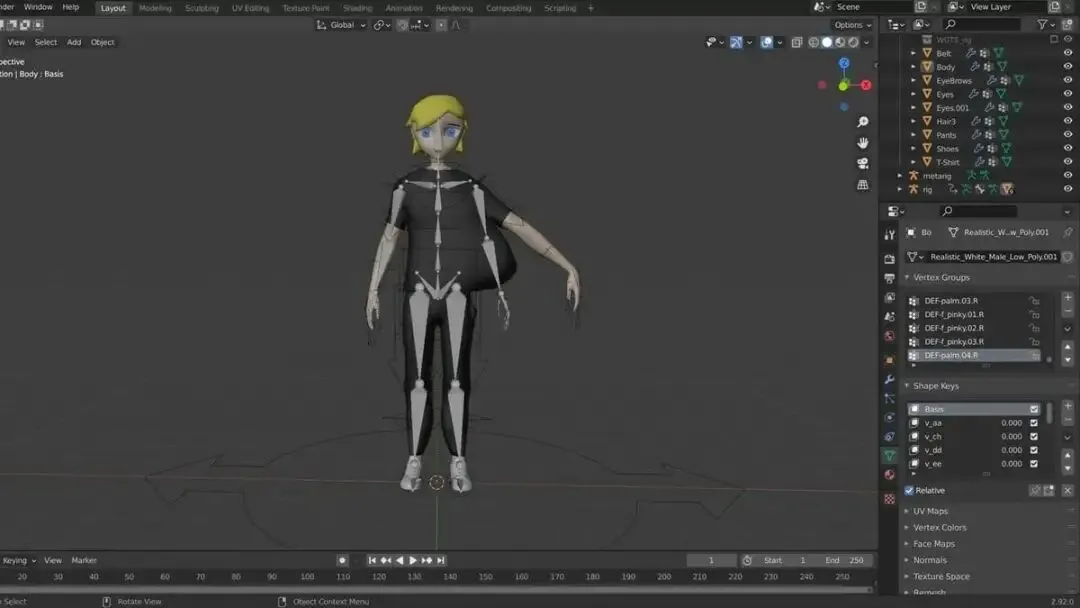 Rigify可自动创建角色绑定,它就像积木一样,可以将其组合起来,创建完整的手臂、腿部、手指等绑定。就算创建绑定之后,不需要使用激活的插件,也可以将它们分享给其他用户。有一点需要注意,Rigify不会将绑定连接到角色的网格,所以这一步还是需要手动完成。