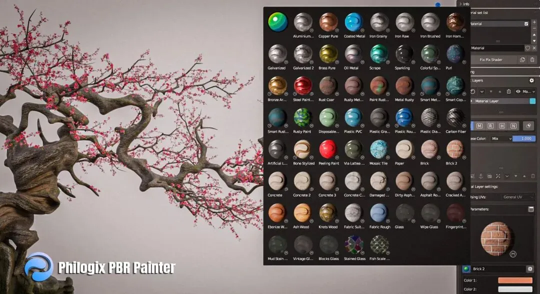 贴图分层绘制插件!可以让你直接在 Blender 中进行纹理和绘制,提供导出 PBR 纹理的选项。图层样式的工作流程与在 Substance Painter 和 Photoshop 中的工作流程非常相似。