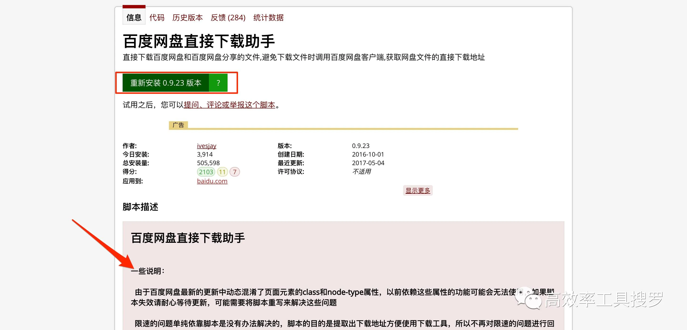 打开一个详细页面,点击【安装此脚本】,或者有的是英文,大概是install usercript 的东西。