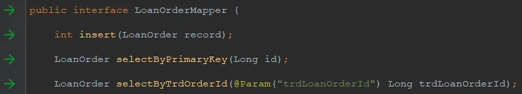 安装完成重启IDEA之后,我们会看到code左侧或多出一列绿色的箭头,点击箭头我们就可以直接定位到xml相应文件的位置。