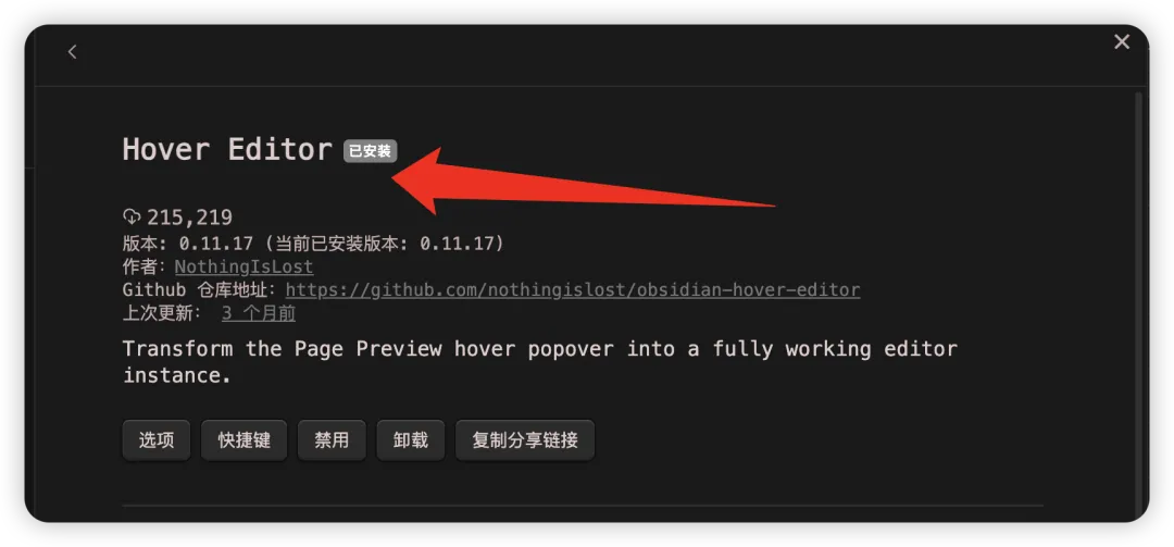 1.安装obsidian插件:Hover Editor将悬停弹出窗口变成功能齐全的编辑器实例