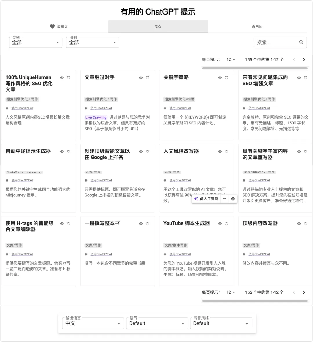 内置了155个有用的ChatGPT提示