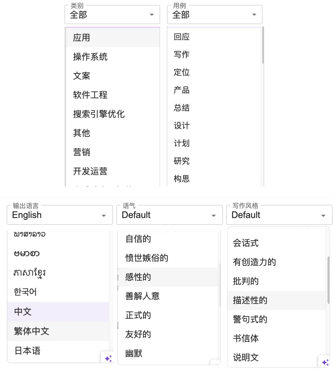 各种商业场景、表达语气和写作风格