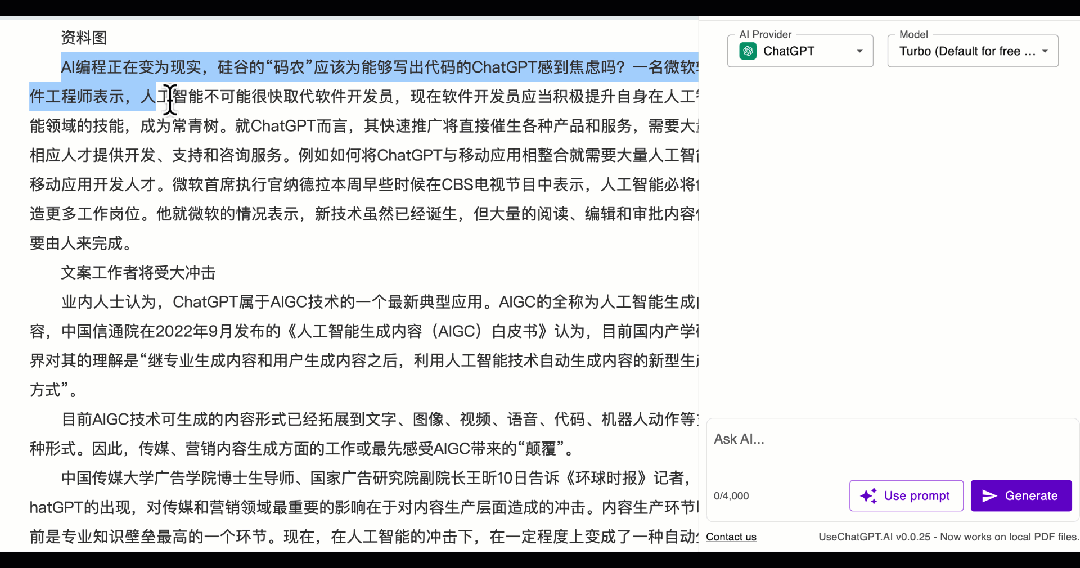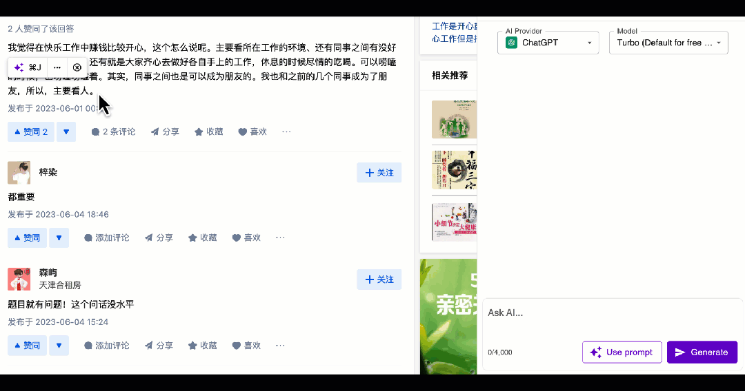 无意中发现一个直接嵌入到网页中的免费的AI插件,可以一键唤出包括ChatGTP、Bard、NewBing、Claude、Free AI五大市场最主流AI为你提供服务,没有次数限制,免费期长达半年(24周)哦。