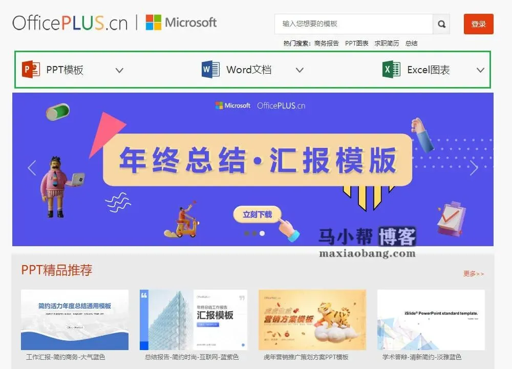 微软官方也似乎知道大家的这个必要需求,很早之前就推出了一款模板资源网站:Officeplus