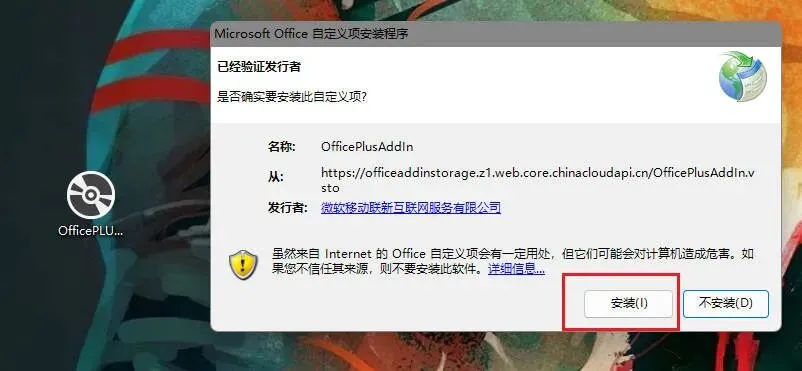 插件的安装方法也很简单,将插件下载到电脑,双击打开OfficePLUS.exe安装即可。