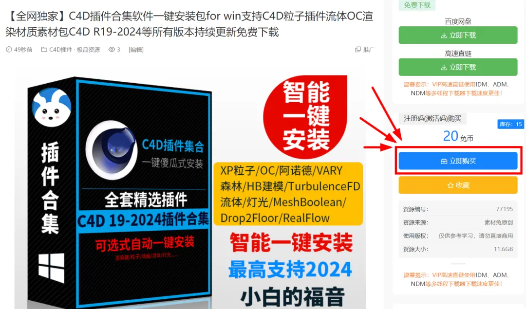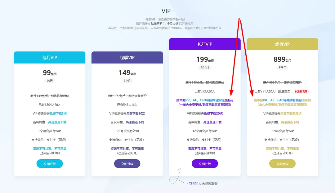 获取方式二:加入本站年费及以上VIP,即可免费获赠本站PR、AE、C4D等插件合集包的注册码。