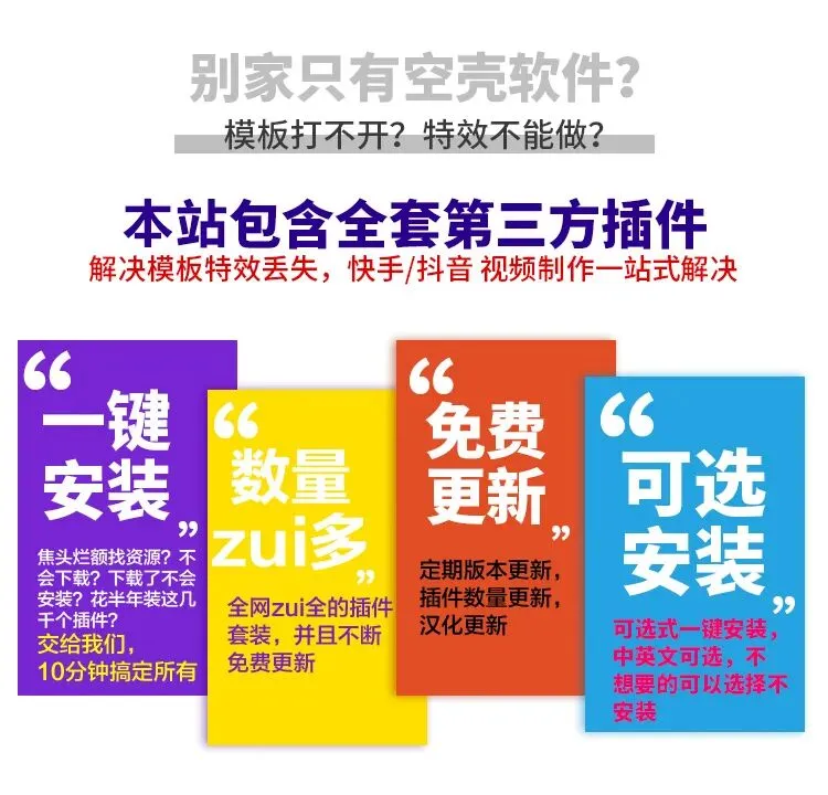 此插件合集包安装简单方便,小白也能安装,10分钟即可装好,完美售后,有任何问题可联系网站客服QQ解决!不用担心不能用!绝对不是市面上其他家可以比拟的,请放心下载安装!