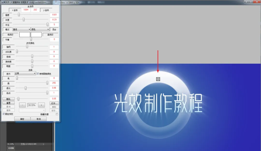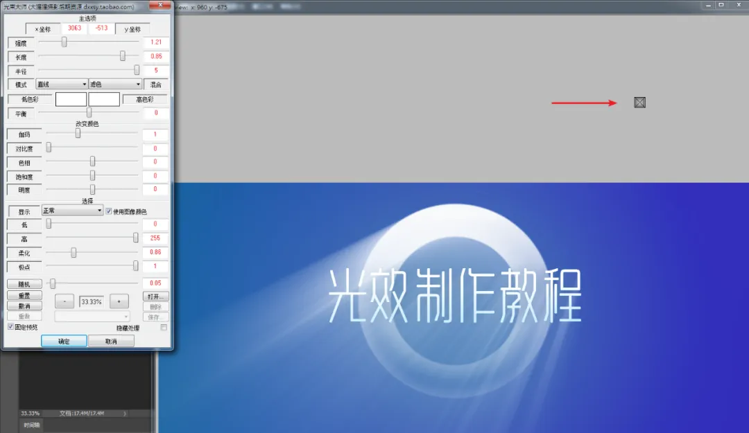 再打开光束大师插件,拖动光源的位置,简单调一下参数。