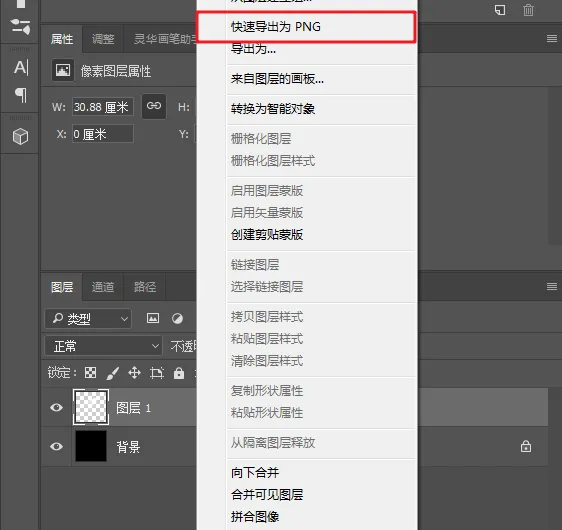 我们只需要点击这个图层,右键选择【快速导出为 png 】即可: