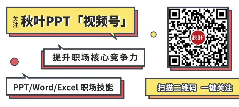 如果你进一步学习 PPT小技巧,如果你想看更多有趣的 PPT 小视频,欢迎扫描下方二维码,关注【秋叶 PPT】视频号~
