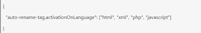 AutoRename Tag的特征是自动重命名配对的HTML/ XML 标签,也可以在JSX中使用。在settings.json文件中的auto-rename-tag.activationOnLanguage中添加一项以设置扩展名将被激活的语言。默认情况下,它是**[“*”]**,将为所有语言激活。