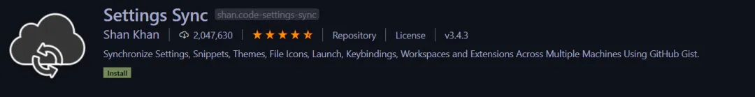 Vscode上又一位五星好评大佬级插件——代码同步工具SettingsSync。它是基于GitHubTokens 和GitHubGist 功能实现,可以一键轻松实现上传下载跨多台机器同步设置、代码片段、主题、文件图标、启动、键绑定、工作区和扩展。