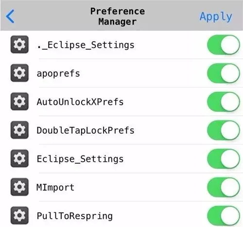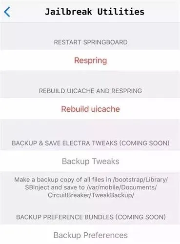 Preferences:备份插件设定,会将文件备份至「/var/mobile/Documents/CircuitBreaker/SettingsBackup」文件夹内