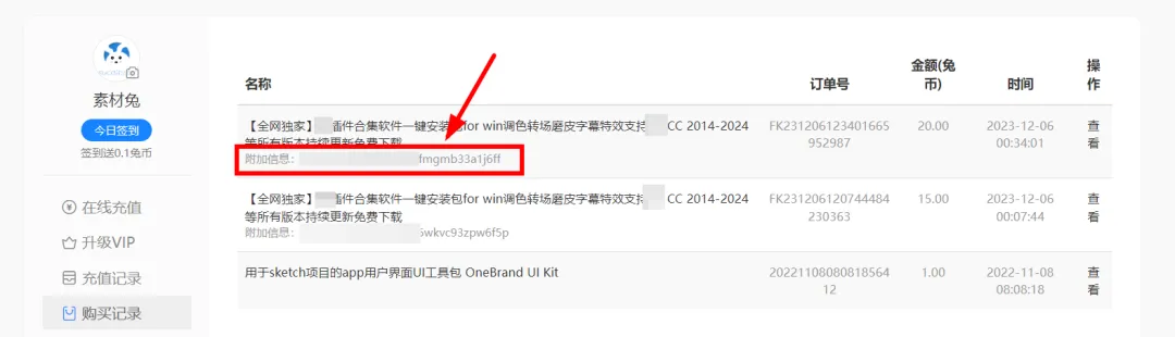 若上一步接收邮箱填写错误,可右上角点击购买记录查询注册码:
