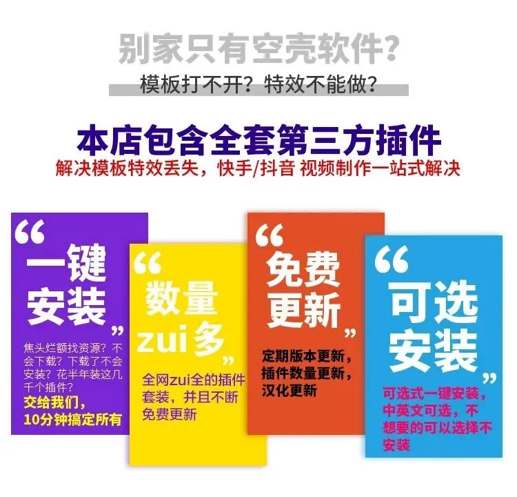 此插件合集包安装简单方便,小白也能安装,10分钟即可装好,完美售后,有任何问题可联系网站客服QQ解决!不用担心不能用!绝对不是市面上其他家可以比拟的,请放心下载安装!