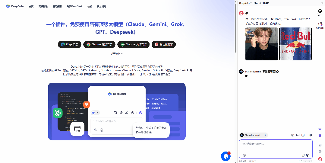DeepSider是一款浏览器侧边栏插件,支持与多款热门AI模型对话和生成图像。