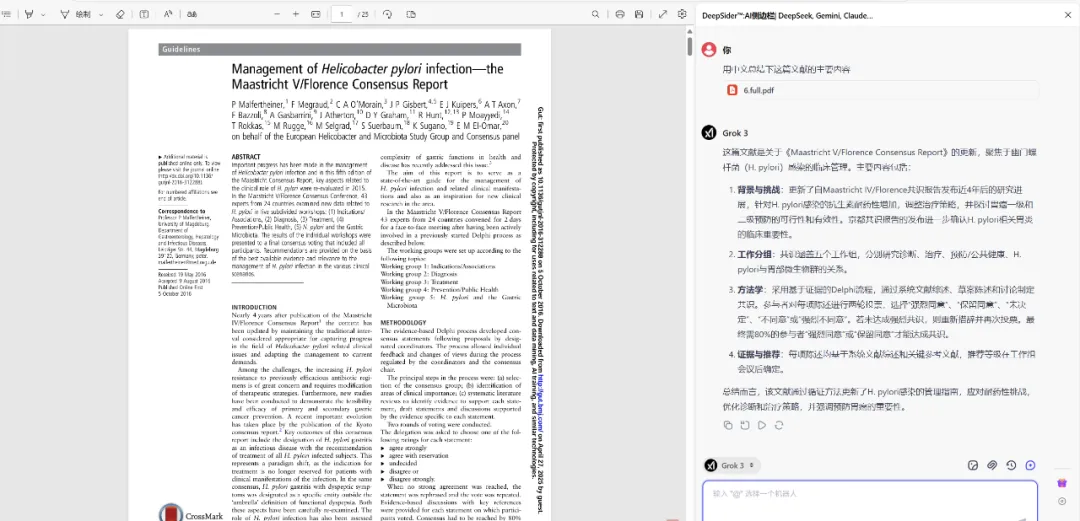 在DeepSider中,先将模型切换为Claude 4或者Grok 4 ,将顶刊的科研配图,和文献选段发给它,输入提示词: