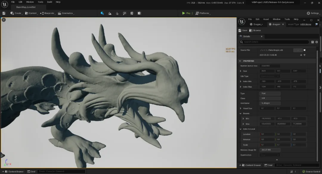 这个插件在UE5中为这两个库添加了支持。一旦导入,每个VDB网格都将转换为NanoVDB,可以获得更好的性能。