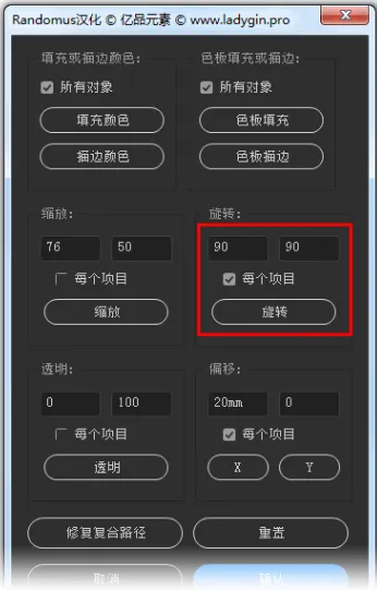 可以随机填色,随机透明,随机旋转,原位旋转缩放等等