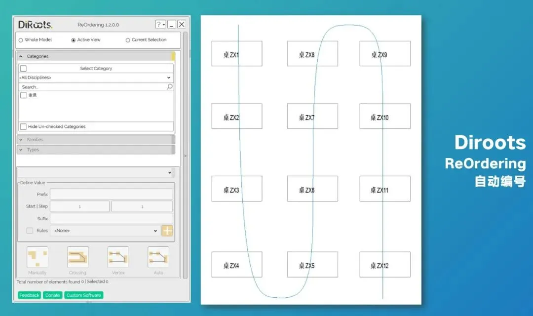 接着自定义编号的前缀和起始数字,选择你要编号的是哪个类别的族,编号就自动生成了。