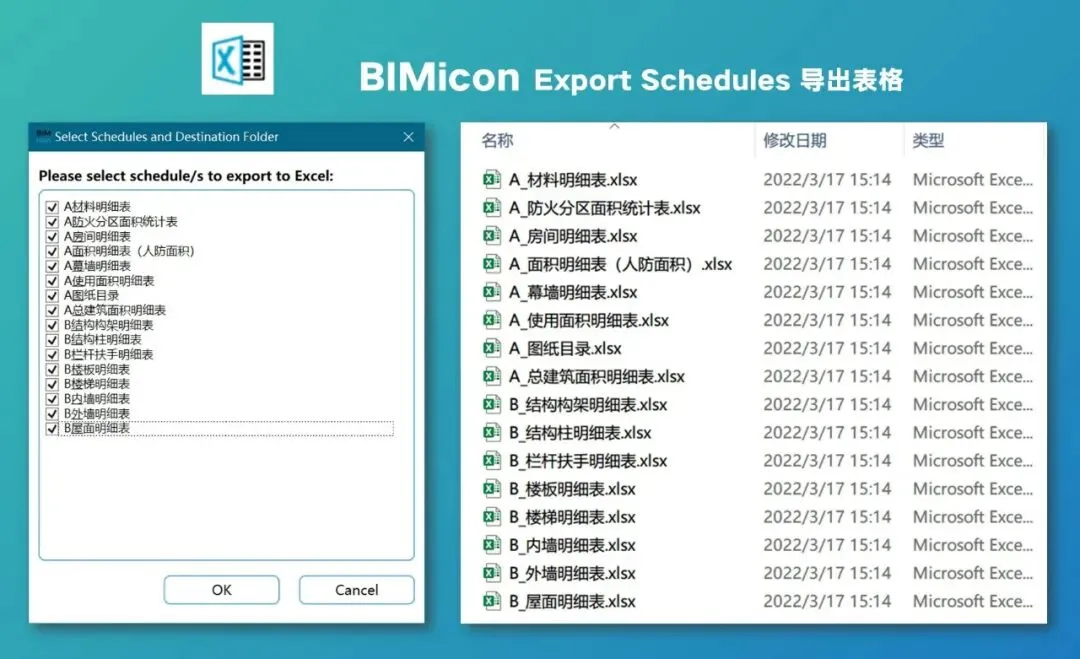 Revit内部是可以建立各种表格的,不过要导出到Excel里进一步编辑,就不太方便了,BIMicon可以批量多选项目中的多个表格,一键导出到本地,直接保存成可编辑的.xlsx格式,进一步做个材料表或者报价单。