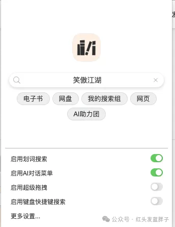 全网搜索电子书,除集成的ZLibrary (Z-Library),LibGen ,鸠摩搜书 ,苦瓜书盘等国内外10多个常用电子书引擎外,用户也可根据自身需要添加待搜索引擎。集成网盘资源引擎,可搜索阿里云盘,百度网盘等网盘资源。