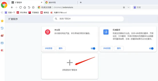 点击“获取更多扩展程序”。