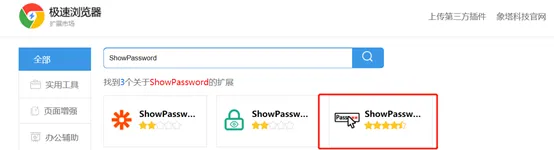 在搜索区域输入“ShowPassword”,选择第三款插件,看到星标等级也知道这款插件多受广大网友的喜爱了。