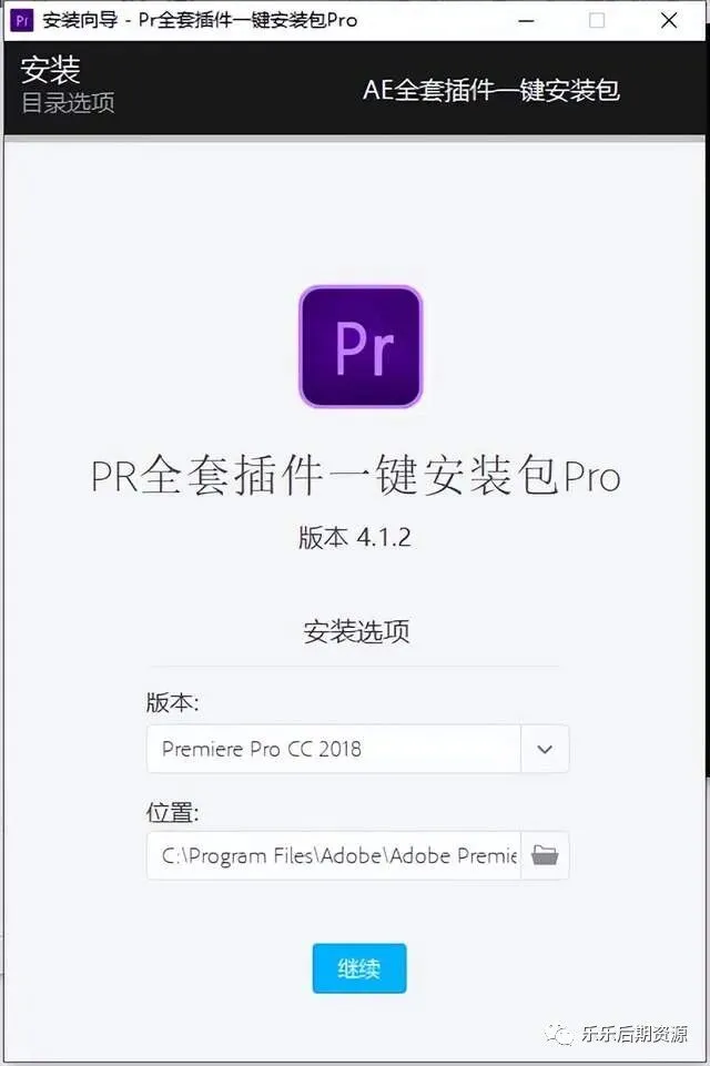 3. 接着软件会自动识别你的PR版本和安装路径,点击“继续”,如果没有识别软件安装路径,那你就手动选择软件安装路径