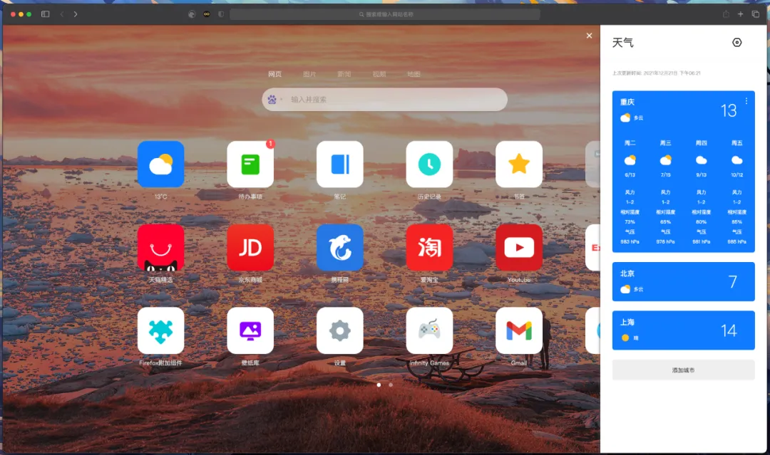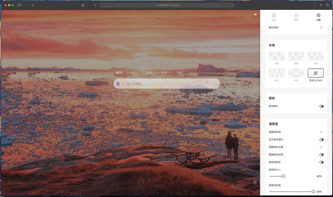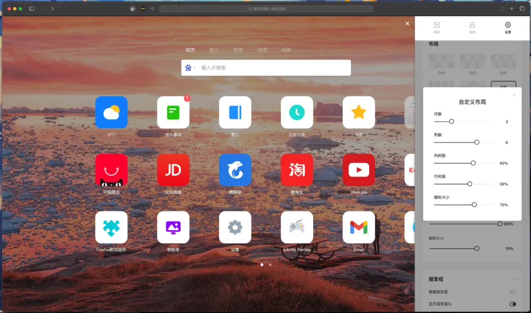 浏览器原生主页/新标签页,图标大小样式不能调,界面布局不能改,背景壁纸过于单调……总之就是各种不自由。