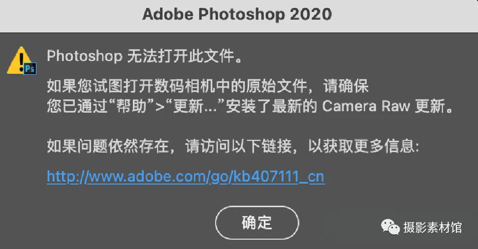 不支持一些新相机的照片!必须升级你的ACR滤镜版本才行)