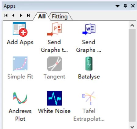 Origin 插件下载完成后是后缀为”.opx”的文件,只需先打开 Origin 软件然后将 “.opx” 文件拖曳进 Origin 面板内即可完成安装,安装过程不会有提示出现,在面板右侧 Apps 窗口中如果有了相应的插件图标(图标灰色并非不可用)即说明安装成功。