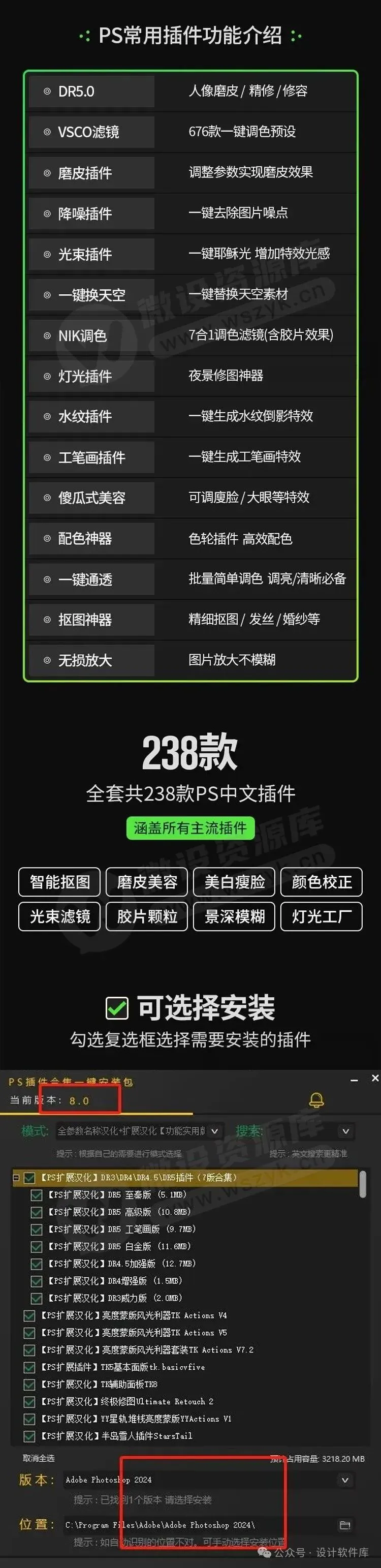 2024最新PS插件合集8.0版本终于来了,一键安装免费使用【1391期】