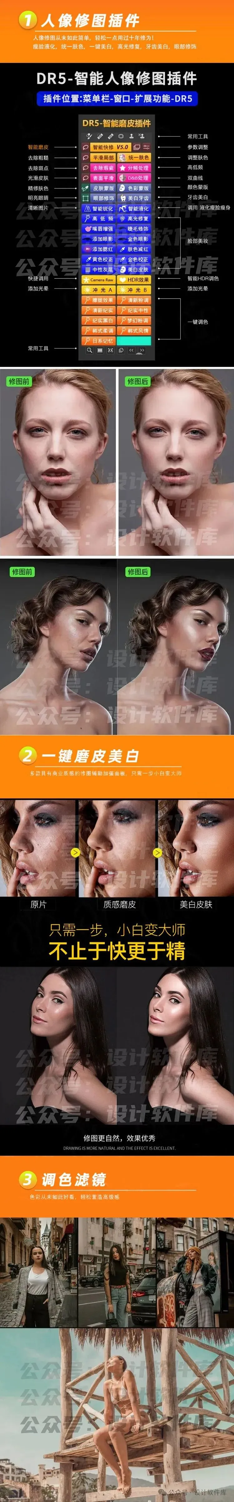 这套PS插件合集包是2024最新版,版本号8.0,包含DR5、证件照v4、portraiture 4 等等,都是今年的最新版本