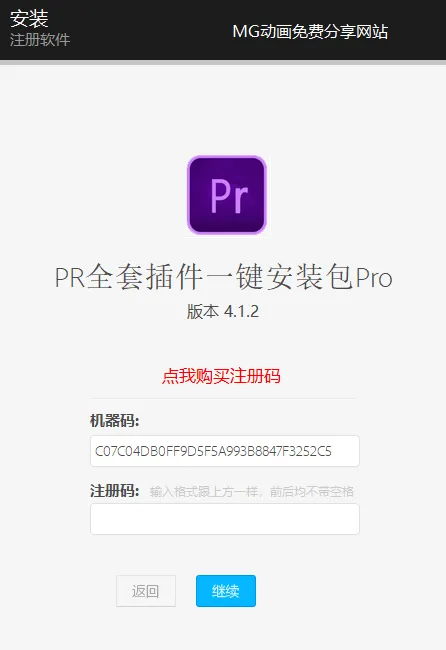 按需选择自己需要的就好,因为安装插件过多的话,就会导致PR变得臃肿;接下来无视注册码,直接点击继续,就可以完成安装了!