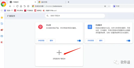 点击“获取更多扩展程序”。