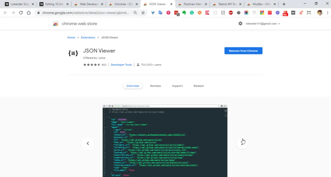 插件地址:https://chrome.google.com/webstore/detail/json-viewer/gbmdgpbipfallnflgajpaliibnhdgobh/related