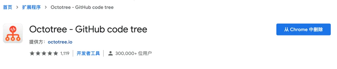 Chrome 插件 Octotree 有 30W + 用户,评分 5.0 。