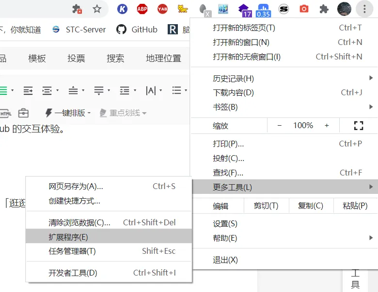 安装也很简单:点击Chrome菜单 → 更多工具 → 扩展程序,进入扩展程序页面。